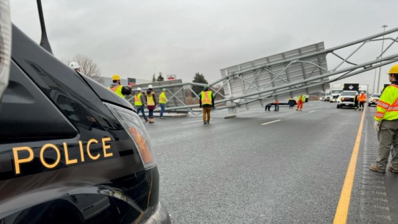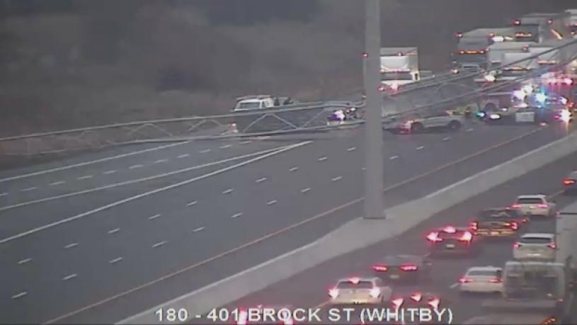 【星岛综合报道】周五早晨8时前,401高速公路上一个大型路牌架被货车撞倒跌落。24岁肇事司机已经被找到,并受到指控。