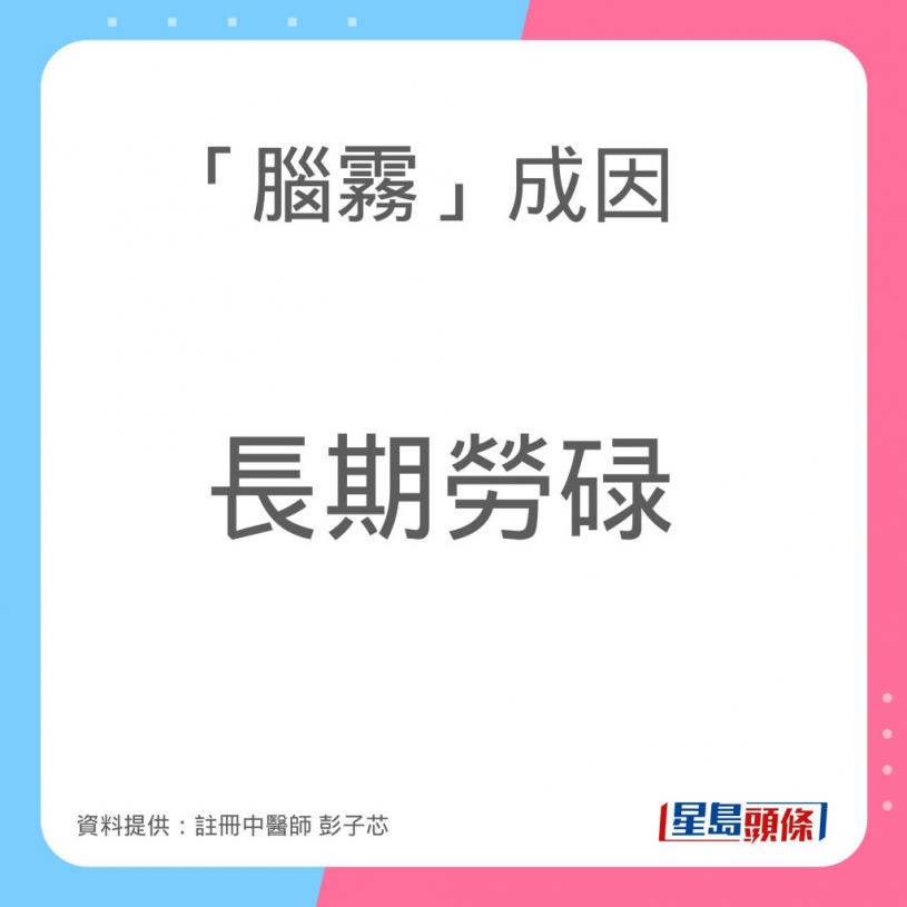 彭医师续指,新冠肺炎只是引起脑雾的原因之一,还有以下6个常见成因: