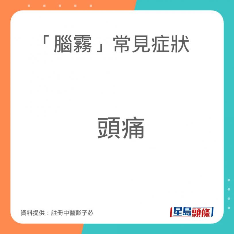 香港注册中医师彭子芯曾在其Facebook专页发文指,除了新冠肺炎,过劳也会导致“脑雾”,继而出现头痛、头晕等情况。