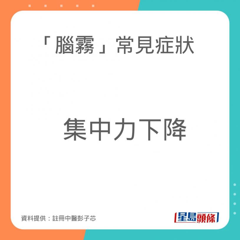 脑雾,泛指出现以下8个与精神及思维能力方面常见的症状: