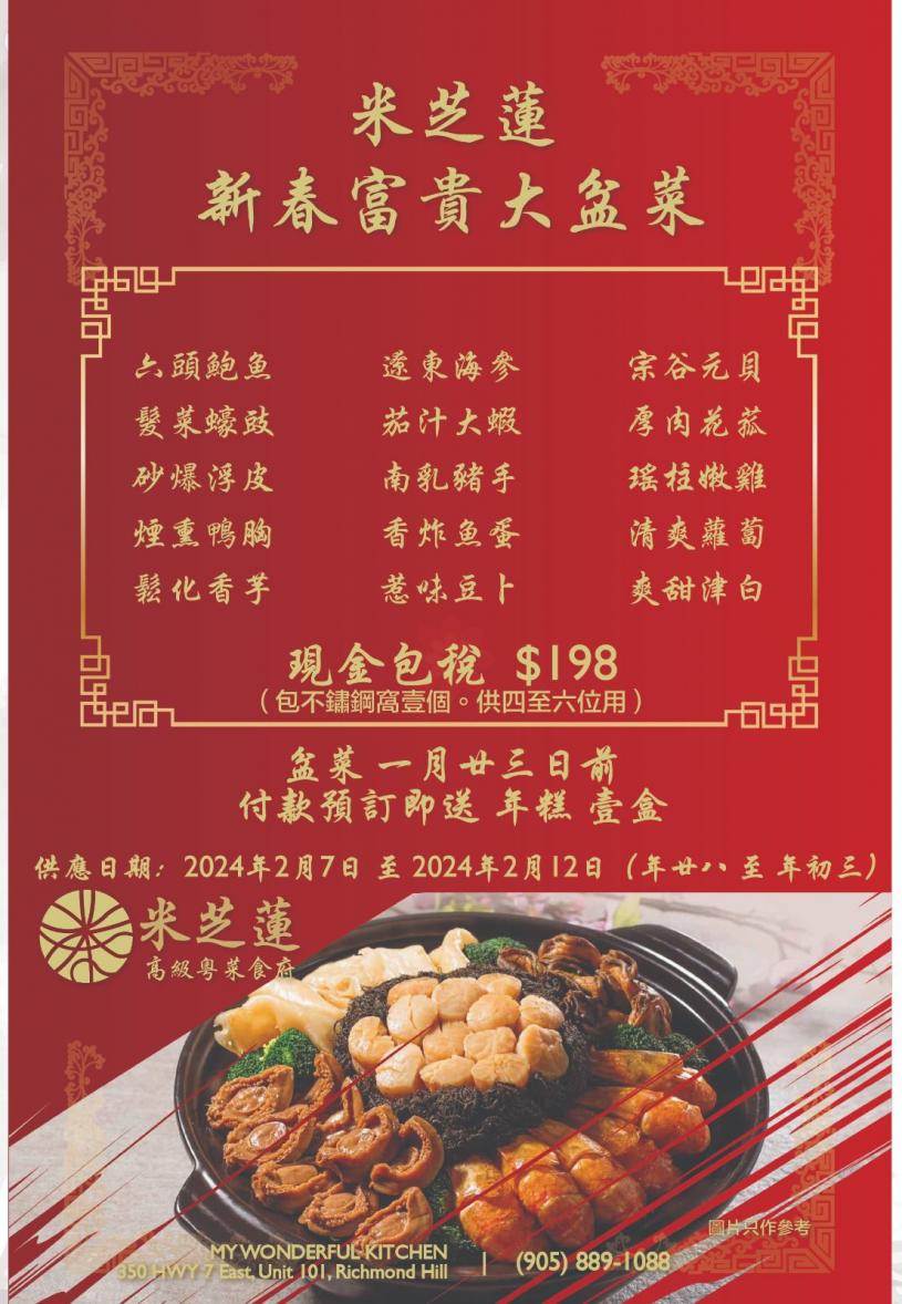 延伸阅读:【盆菜2024】最齐全多伦多20间酒楼、餐厅、超市新年盆菜整合!价钱、优惠、供应期一文看清