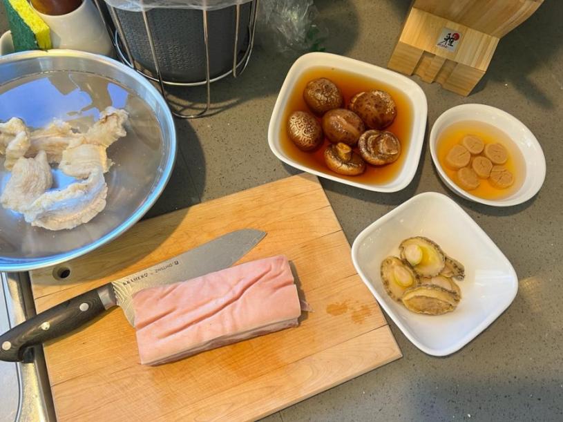 準備工作:冬菇隔夜浸泡,花膠要浸泡24小時以上為佳。