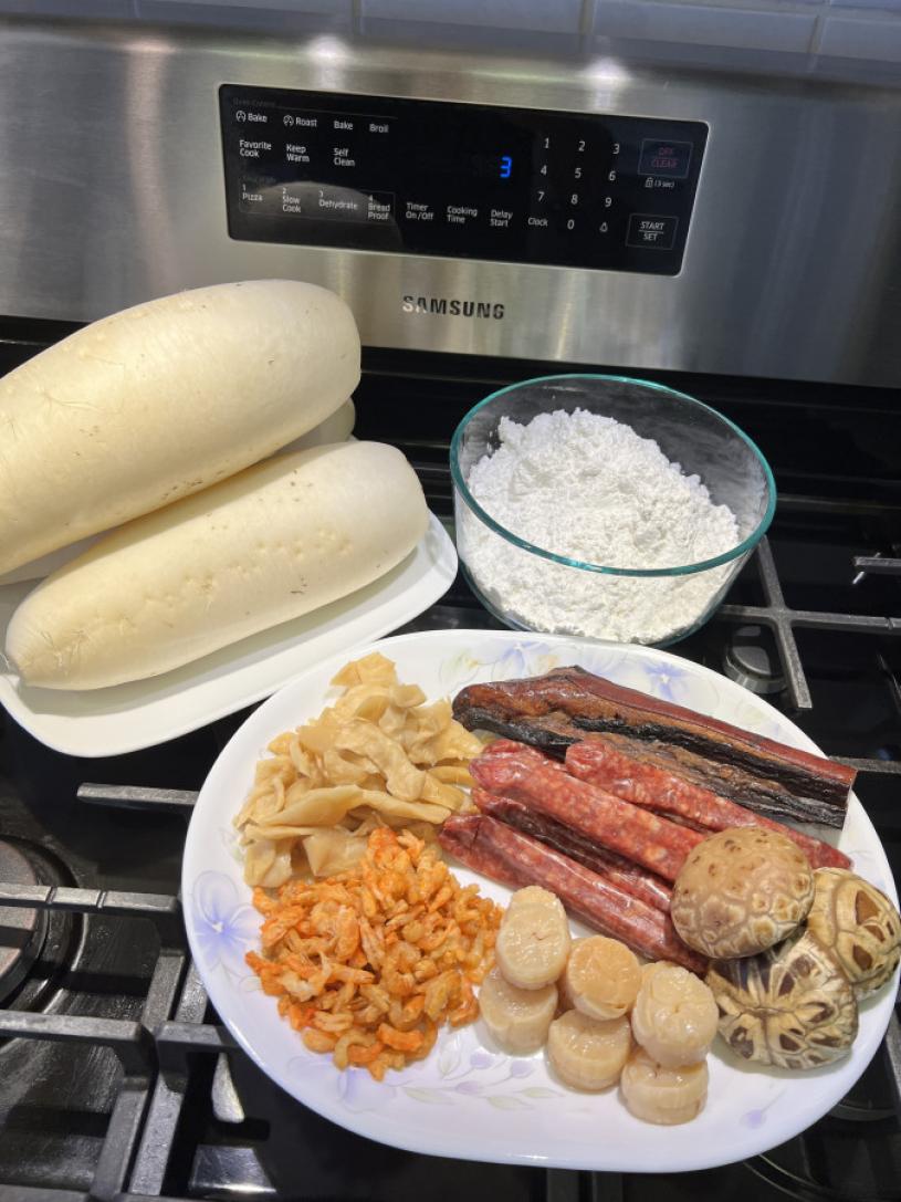 1公斤半粘米粉,或萝卜与粘米粉比例为10:1.5。