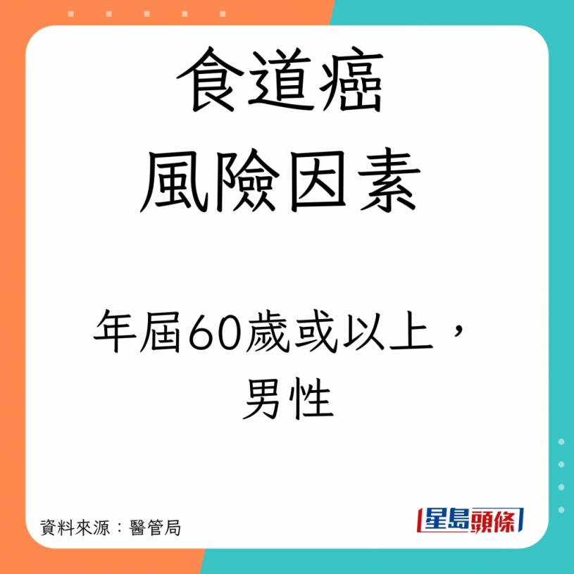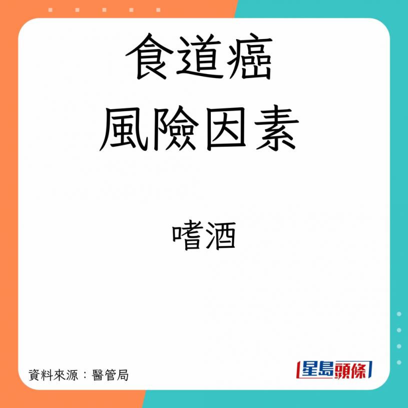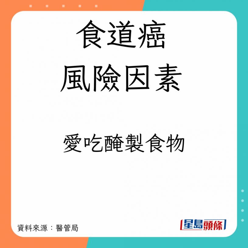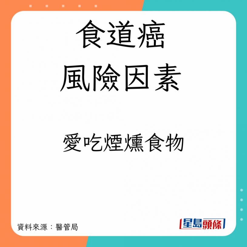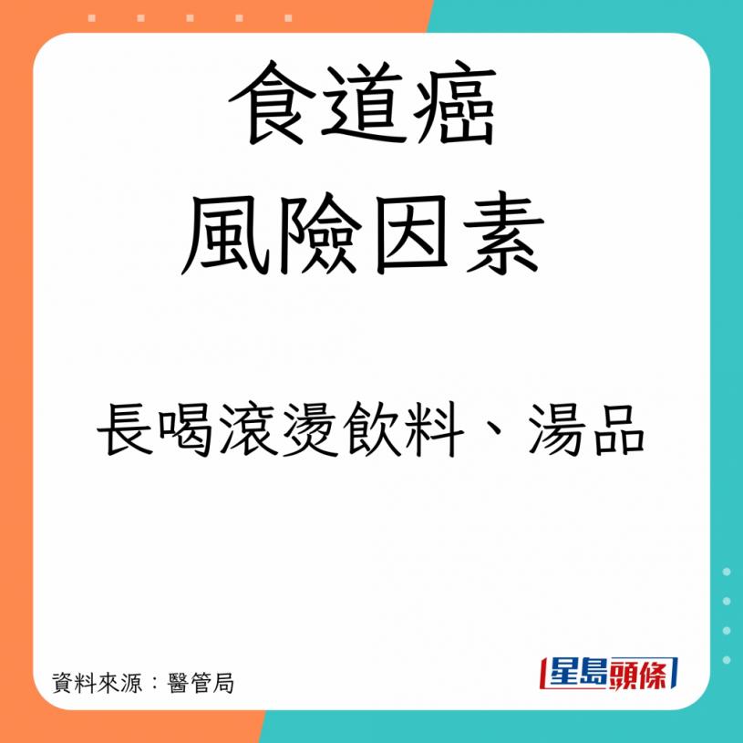 醫管局指,食道癌成因至今並未有定論,但可能與以下6大因素有關: