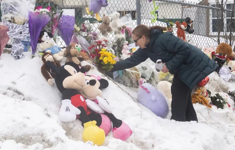 【星岛综合报道】满地可北部一家日托中心被公交车袭击事件,造成 2 名儿童死亡, 6 名儿童被送往医院,社区内许多民众在事发现场摆放鲜花和毛绒玩具悼念小小的生命。有目睹事件的家长描述当时情况感到悲痛。当局称还未知嫌犯圣阿曼德 (Pierre Ny St-Amand) 犯案动机。