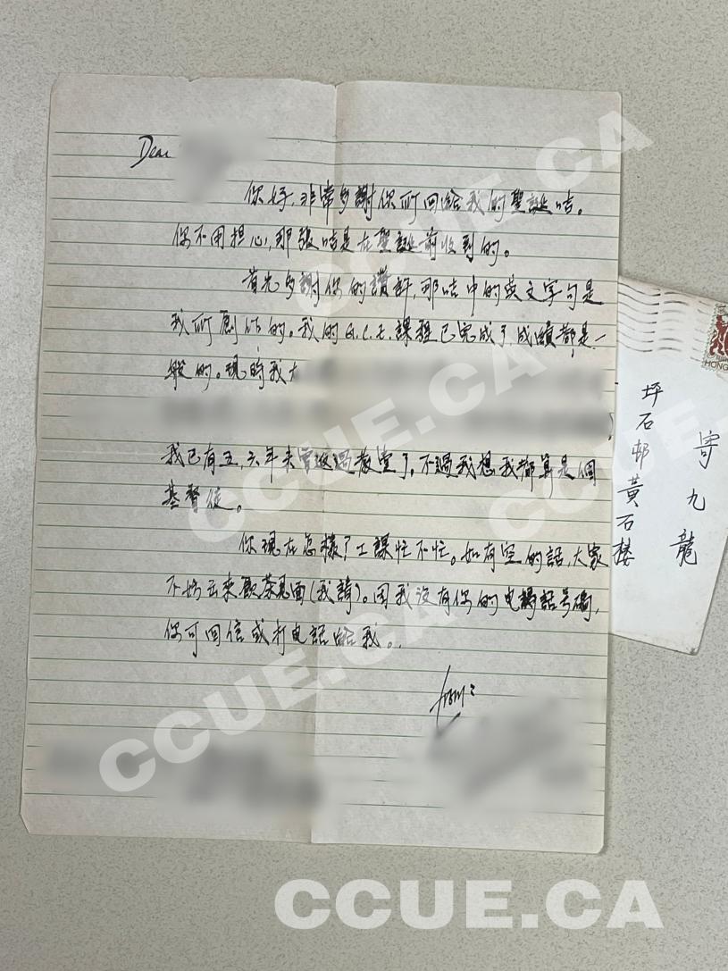以上这封信的收信人是已移居加拿大少女,写信人是一名非华裔男子追求者,最终收信人没有接受这段感情。