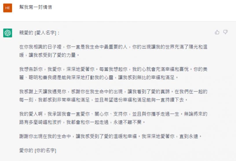 小编尝试交由人工智能ChatGPT撰写情书,表达方式更加澎湃露骨、直抒胸臆,不过未必每人受落,不建议原封不动送出,但作为灵感来源也未尝不是一个好方法。