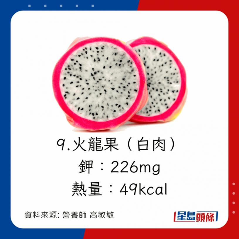 火龍果(白肉):鉀:226mg;熱量:49kcal