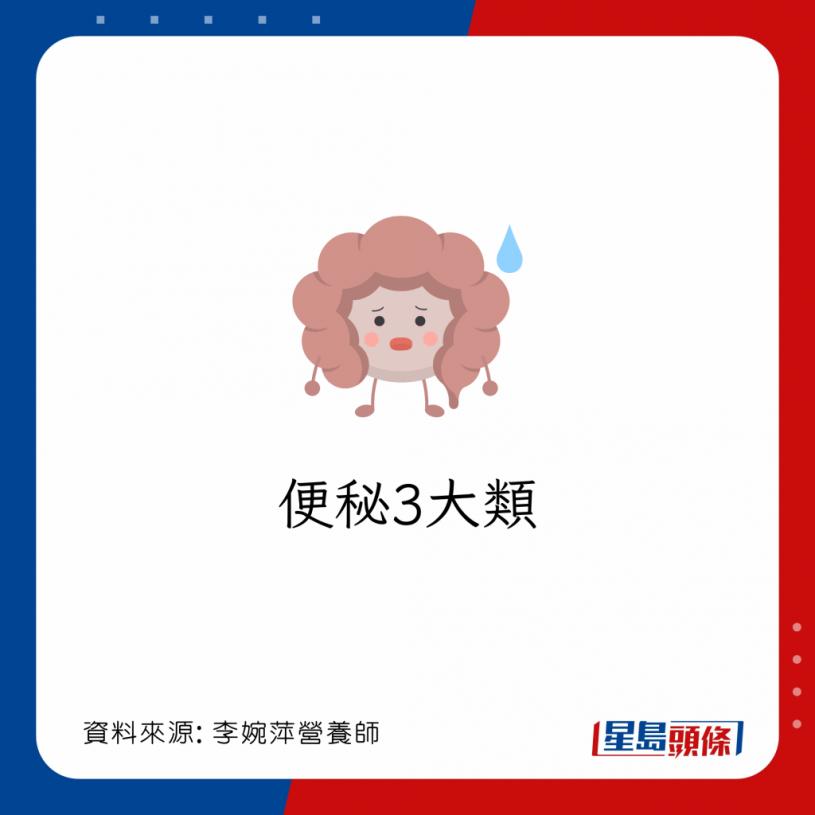 营养师李婉萍曾发文指,便秘可分为3大类型,透过粪便颜色及形态更可解读身体警号。她按照不同类型的便秘,提出相应的饮食及生活建议:
