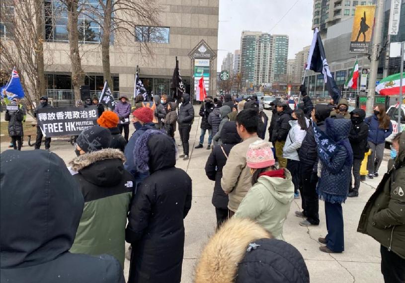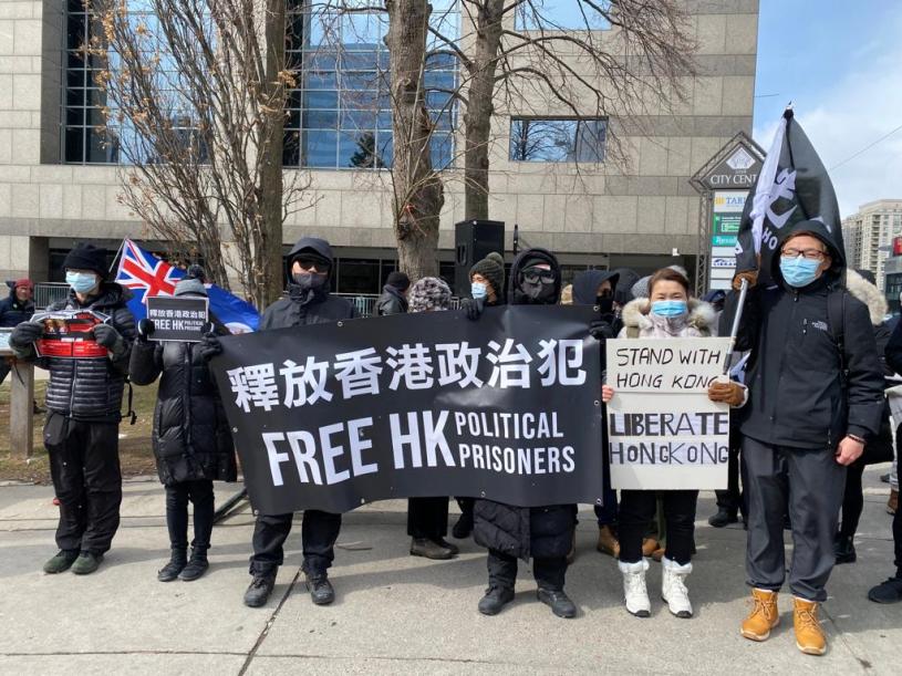 一个由身居加拿大的香港人组成的团体《香港政治犯关注组》,周六在多伦多Mel Lastman Square外集会,要求香港政府释放所有政治犯,数十名在加港人及本地人冒着寒风到场声援。