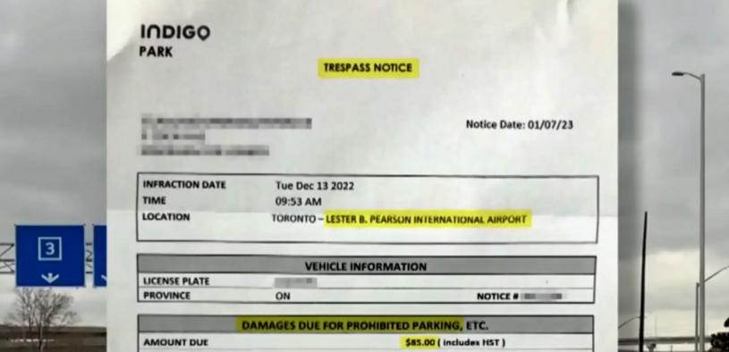 几周后,Islam收到了Lester B. International Pearson机场的非法进入通知书,上面说禁止停车的罚款金额为85元。