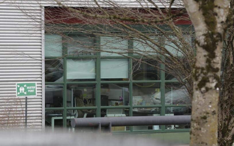 厂房的入口大门,被一道铁闸包围着,铁闸外有密码锁,员工需要按下密码才能进入铁闸范围内。铁闸处亦贴上告示,表示欲进入厂房的人士,必须先行登记。铁闸外亦有告示,指厂房各处都设有闭路电视长期监察。