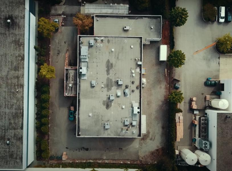 从高空望下的厂房,图上方是办公室位置。(YouTube截图)