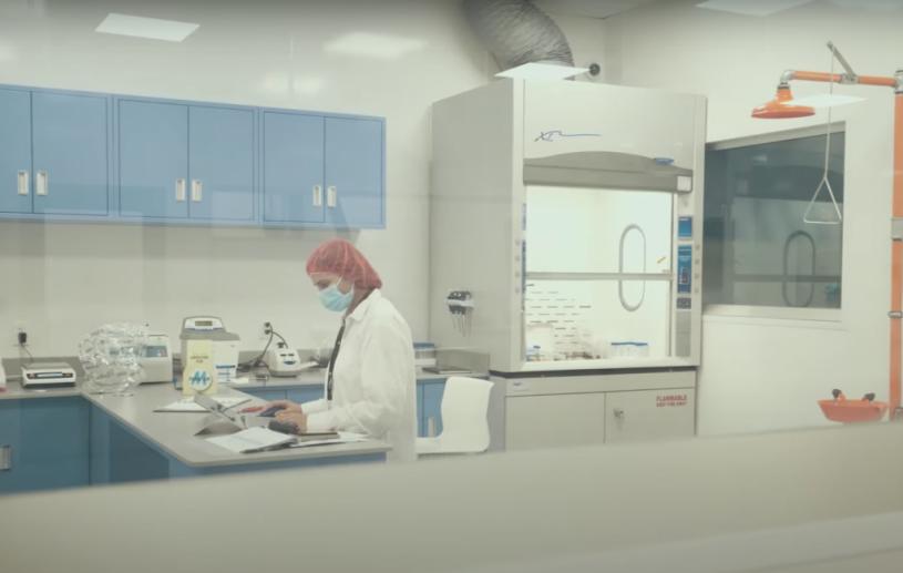Adastra Labs内附责研究和生产的工作人员,在厂房内穿产防护衣物工作的情况。(YouTube截图)