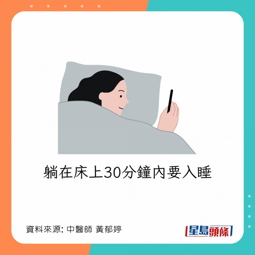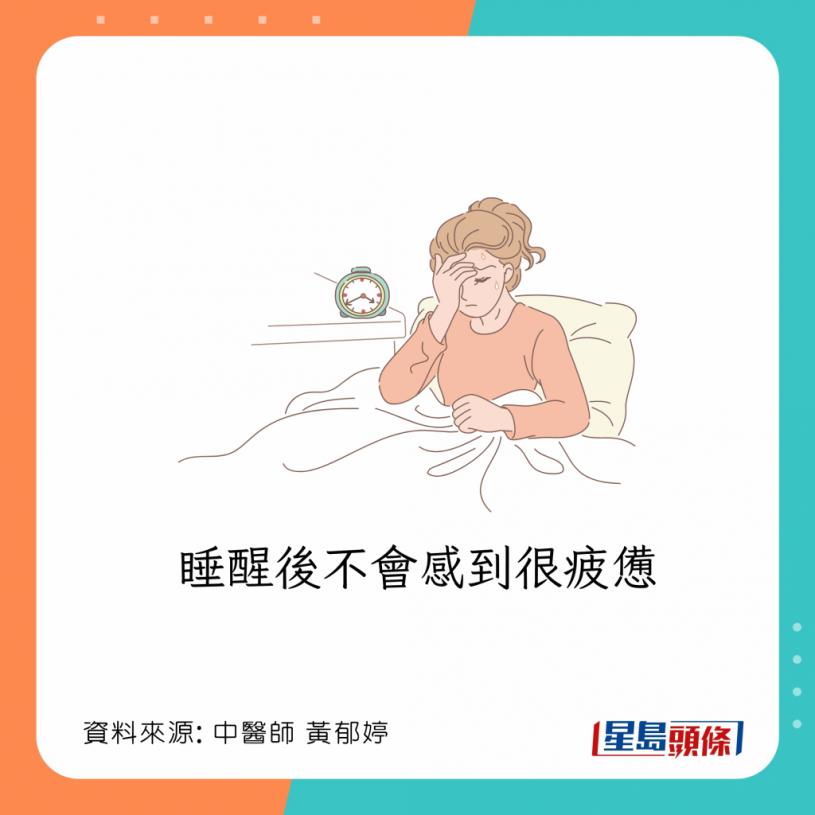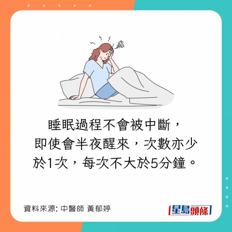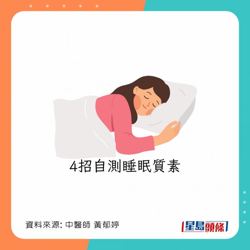 台湾中医师黄郁婷曾发文指,若不知道自己睡眠质素如何,可以用1方法作自我测试。她指出,良好睡眠质素须符合《美国睡眠医学会》公布的4大条件: