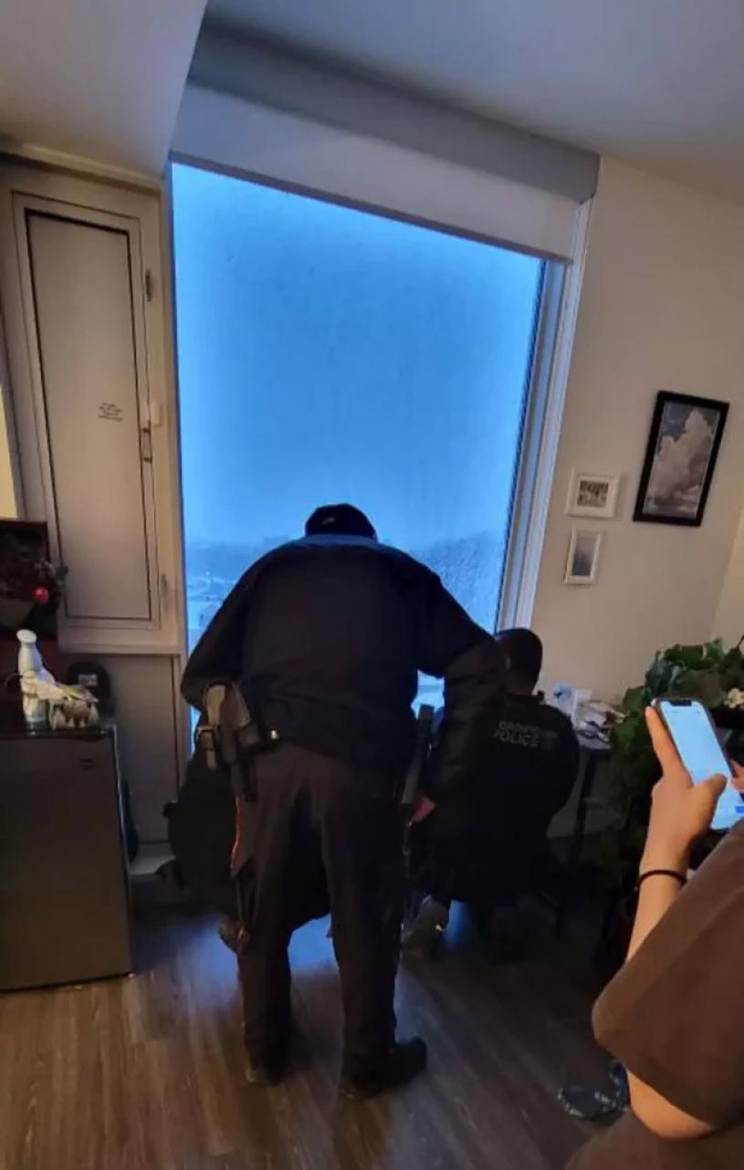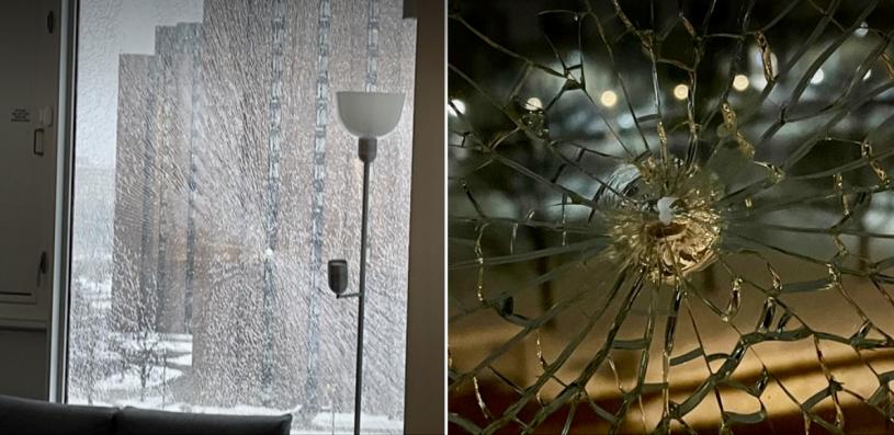 被损坏的窗户在社交媒体上的照片和视频中清晰可见,目击者描述有巨大的声响,但警方将其视为BB弹枪击事件。