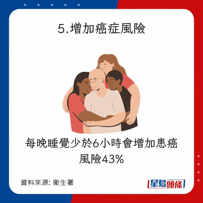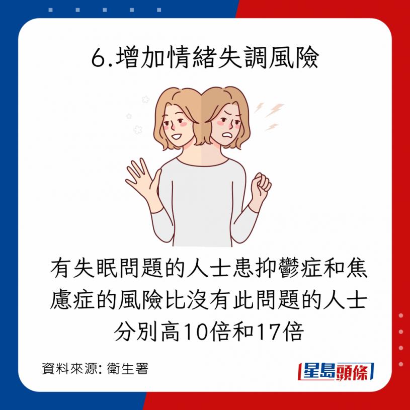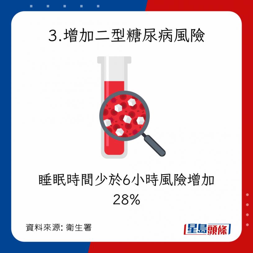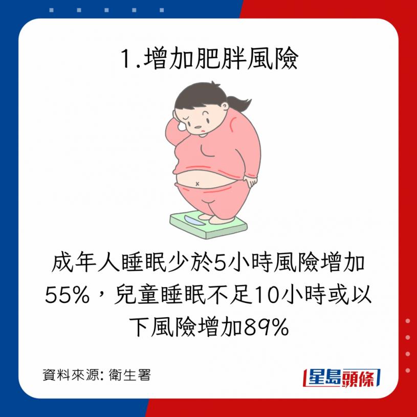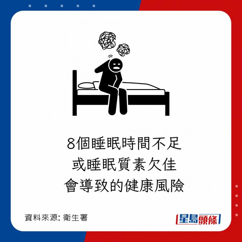 未能进入深层睡眠会令睡眠质素变差。根据卫生署资料指出,睡眠时间不足或睡眠质素欠佳会导致有以下8个健康风险: