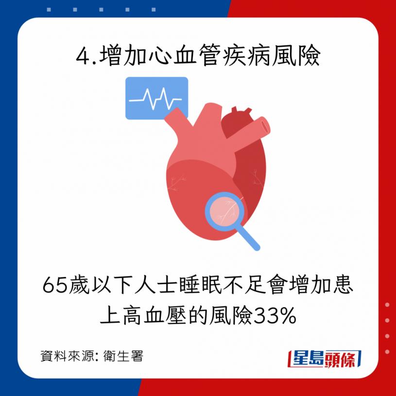 睡眠时间较短的人士患上或死于心脏病和中风的风险,比每晚有充足睡眠(7至8小时)的人士分别高48%和15%