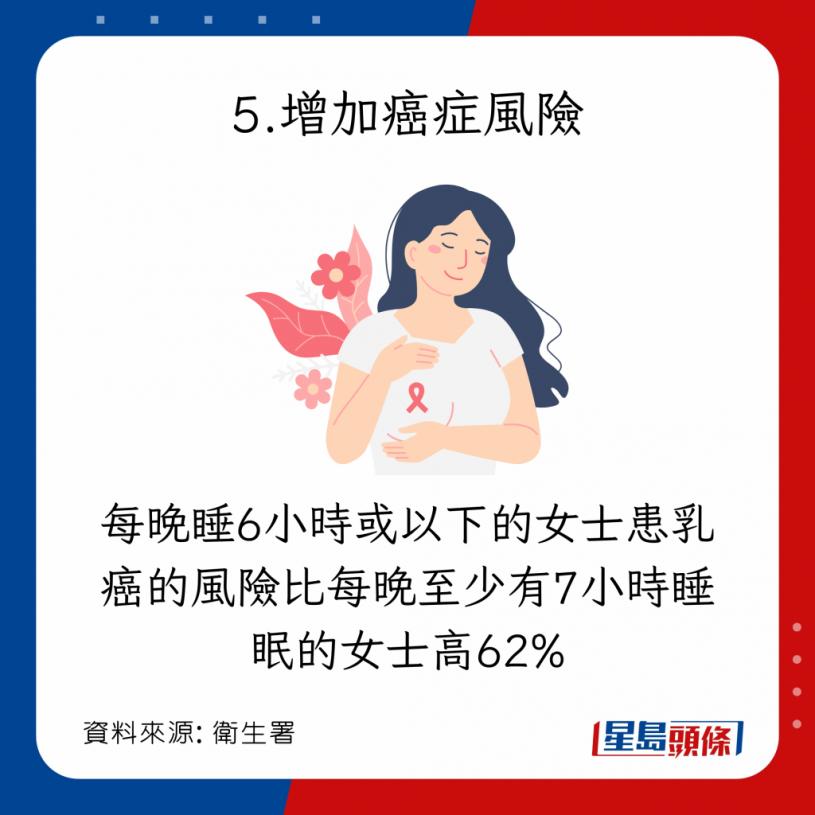 每晚睡6小时或以下的女士,患乳癌的风险比每晚至少有7小时睡眠的女士高62%