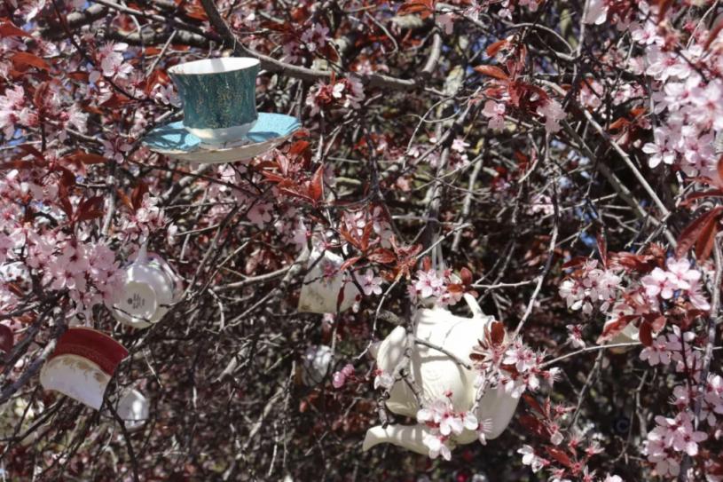 【星島綜合報道】每年春天,維多利亞市的街道上綻放各種花朵,美麗景象吸引了遊客和居民的目光。在歷史悠久的詹姆斯灣社區,一棵開滿花朵的樹引起了大家的關注,它不僅綻放著粉色花瓣,還掛滿了茶杯和一個茶壺。