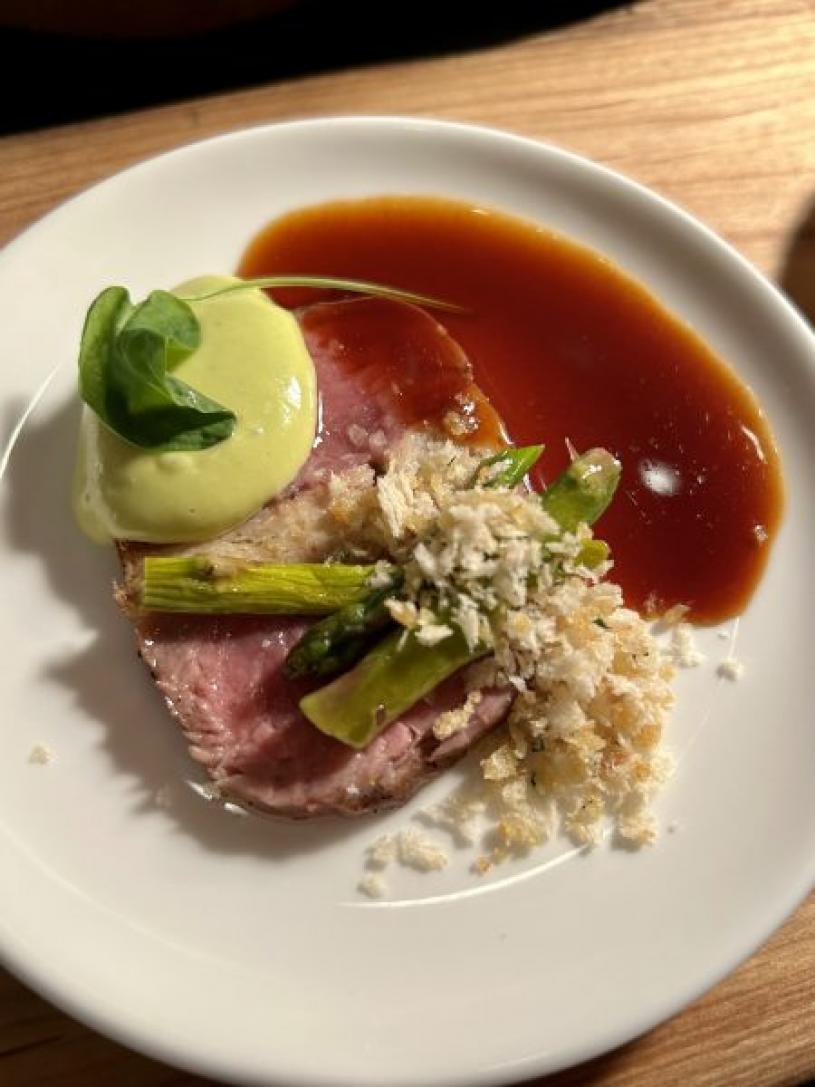 同樣選擇以海鮮創作的Marriott Pinnacle Hotel行政總廚安特霍斯(Edison Antejos),使用Ocean Mama Seafood的長鰭鮪魚,以昆布醃漬48小時搭配紫菜脆皮,明顯為日式烹調手法,味道細緻優雅,與他笑臉迎人的爽朗形象大不相同,有反差萌的感覺。