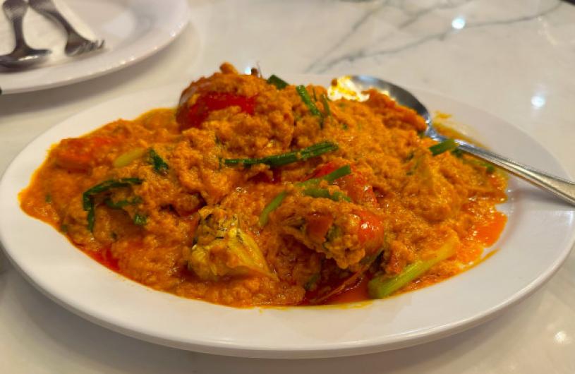 位於曼谷著名購物商城 CentralWorld 的建興酒家非常乾淨,餐廳內有足夠的冷氣,適合一家大小或朋友聚會,餐單上也有英文和中文翻譯。咖喱炒螃蟹是泰國海鮮餐廳必點的一道料理,米芝蓮推薦建興酒家的咖喱炒蟹,蟹肉新鮮肉厚,咖喱汁不會太辣,撈汁配飯實在一流。