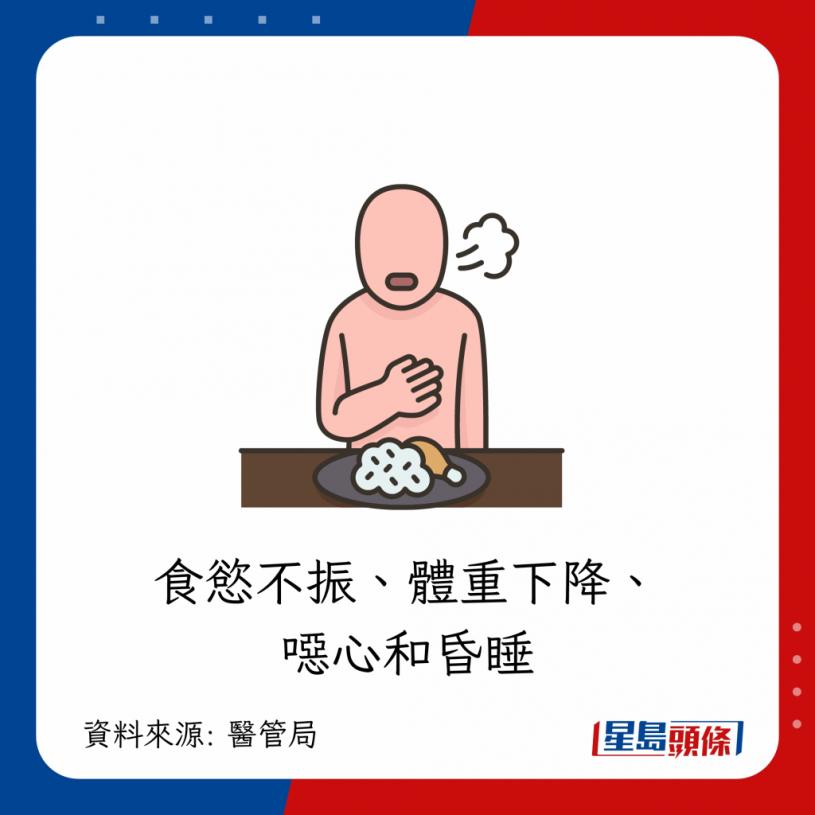 肝硬化患者初期通常只有些少不明顯的徵狀,包括: