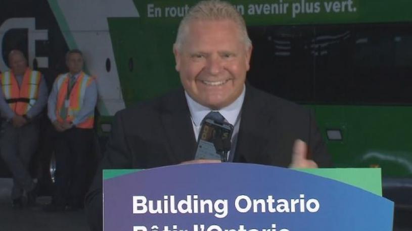 【星岛综合报道】安省省长道格福特(Doug Ford)今(12日)于奥沙瓦出席GO巴士记者会时,拿出电话并播放Eddie Grant的歌曲《电动大道》(Electric Avenue),并宣布此歌为安省新主题曲。
