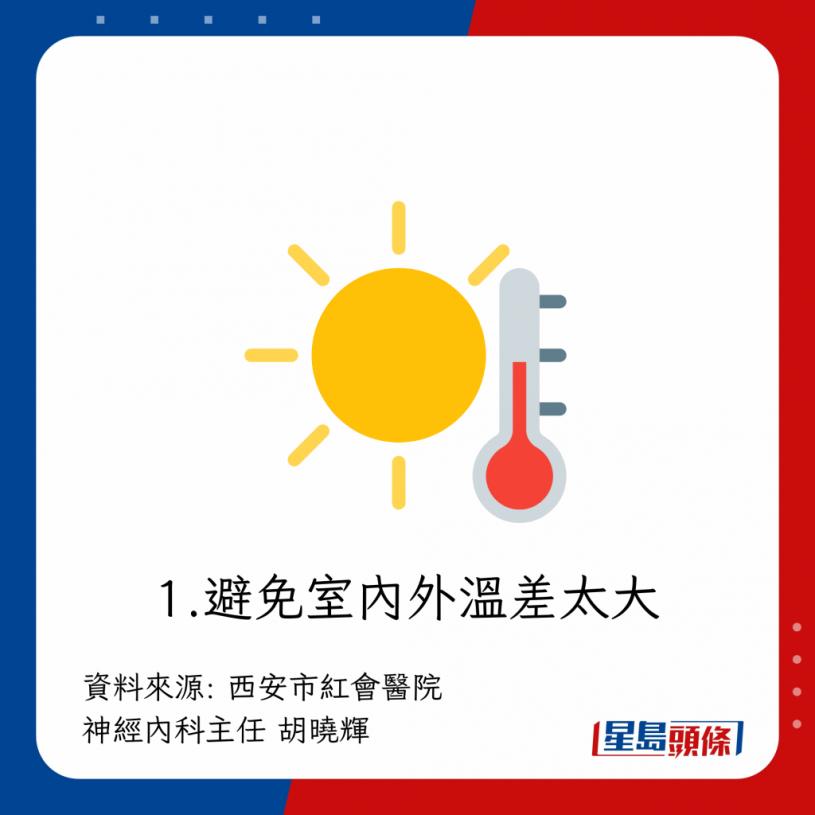 西安市紅會醫院神經內科主任胡曉輝指出,要避免溫差大而引發中風,須留意以下4大事項: