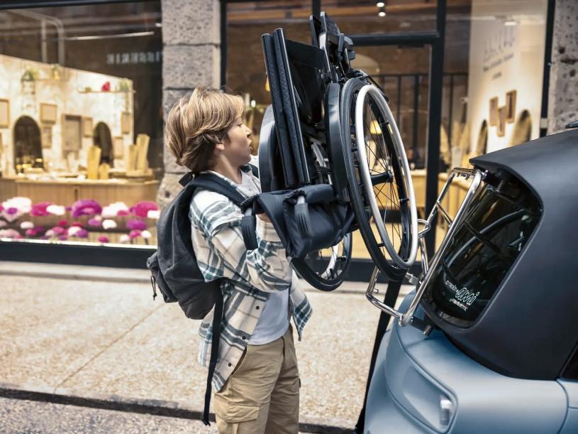 车后面的铝制行李架也可以用来固定轮椅,腾出的座位可以添一名乘客。