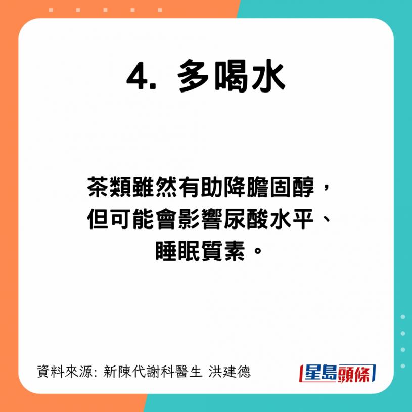茶类虽然有助降胆固醇,但可能会影响尿酸水平、睡眠质素