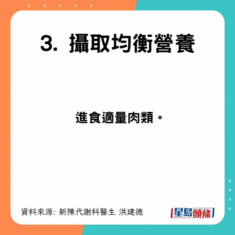 洪建德医生又指,午餐及晚餐的食物应该以多样化为主,才能吸收足够营养素。