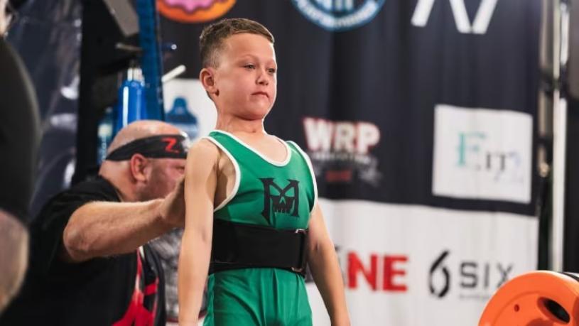 亚省9岁男童获金牌可举150磅 最爱翻轮胎最怕坐飞机