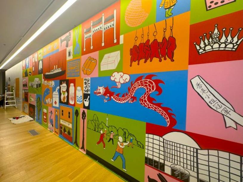 - 彩绘壁画《一路至此》,由加拿大华裔艺术家袁慧娴(Marlene Yuen)创作,重点显示了加拿大华裔从过去到现在的旅程和经历。