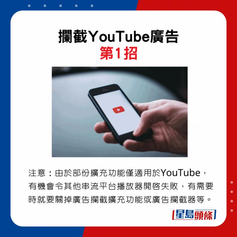 在YouTube睇片及听歌乃日常的消遣节目之一,然而不少用家都曾经历以下遭遇。正当浸醉于片中的世界或曼妙的歌声音乐中,不单只到广告的打扰,“扫兴”之余,更要被迫收看广告。如果想睇片及听歌畅通无阻,只要记住以下3招,便可即刻拦截扰人的广告。