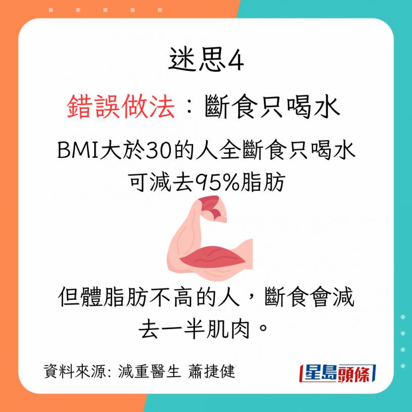 BMI大于30的人全断食只喝水可减去95%脂肪,但体脂肪不高的人,断食会减去一半肌肉。