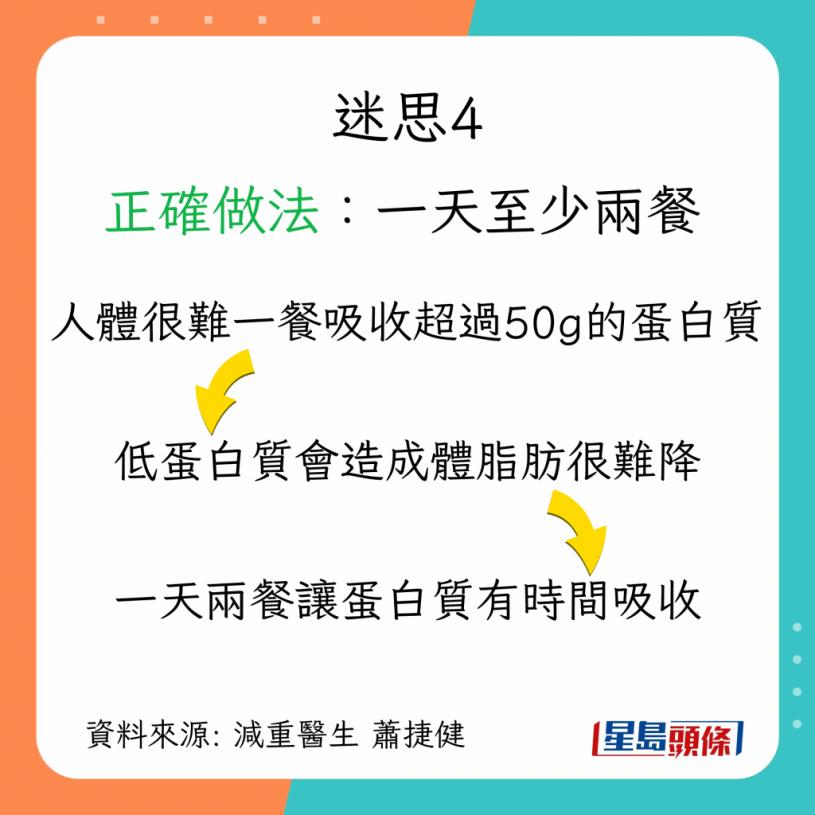 建议至少一天两餐,让蛋白质有时间吸收,身体的压力也会比较小。