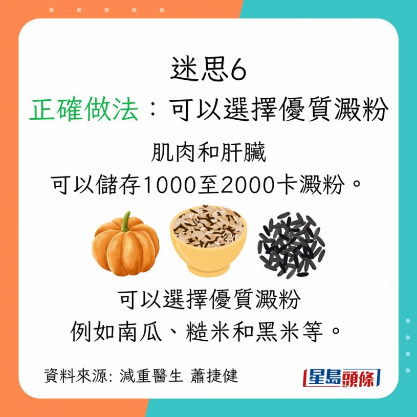营养师程涵宇其Facebook专页指,淀粉是“全榖杂粮类”,含丰富碳水化合物.是人体主要的热量来源,不能完全戒掉。若要减肥减糖,每天不宜吃超过1碗白饭,但吃非精制的“全榖杂粮类”(淀粉)则更好。她列出9款非精制淀粉食物,建议优先选择:
