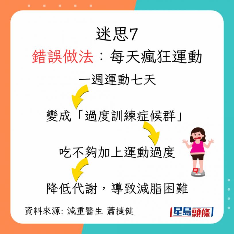 一周运动七天,会变成“过度训练症候群”。吃不够加上运动过度,会降低代谢,导致减脂困难。
