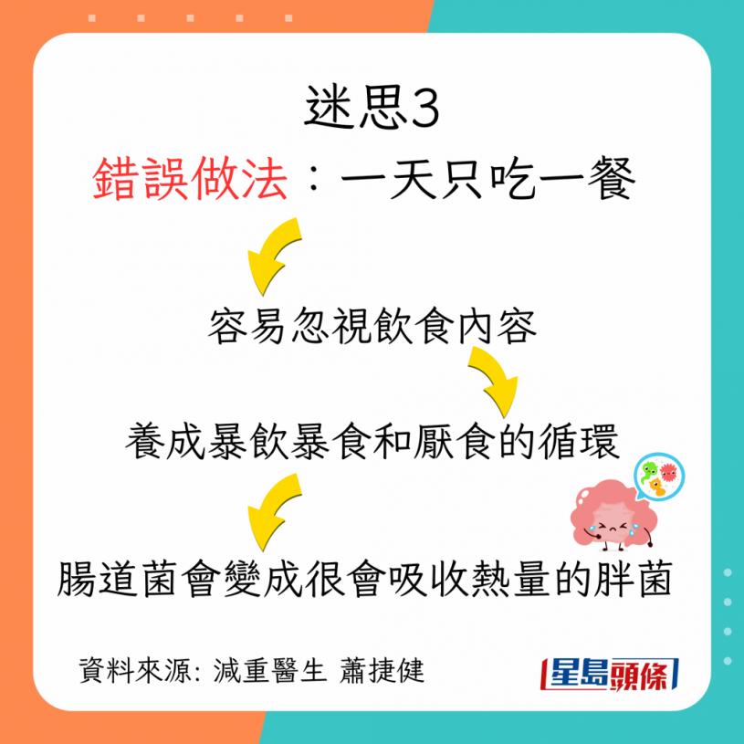 人很容易觉得:一天只吃一餐,就要吃些开心的,不太注意饮食内容,容易养成暴饮暴食和厌食的循环,肠道菌也会被训练成很会吸收热量的胖菌。