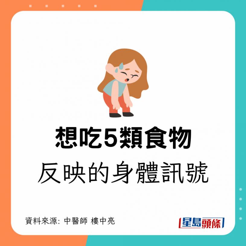 楼医师指,如果特别想吃以下5类食物,应补充适当营养素,并在必要时求医。