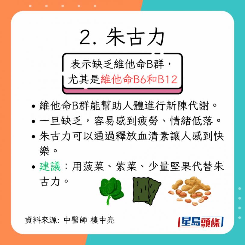 反映的身体问题:缺乏维他命B群,尤其是维他命B6和B12。