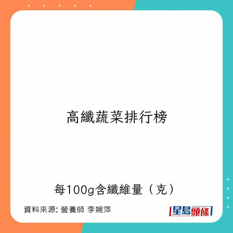 营养师李婉萍曾发文列出9款纤维量高又常见的蔬菜,适合减肥及便秘人士食用: