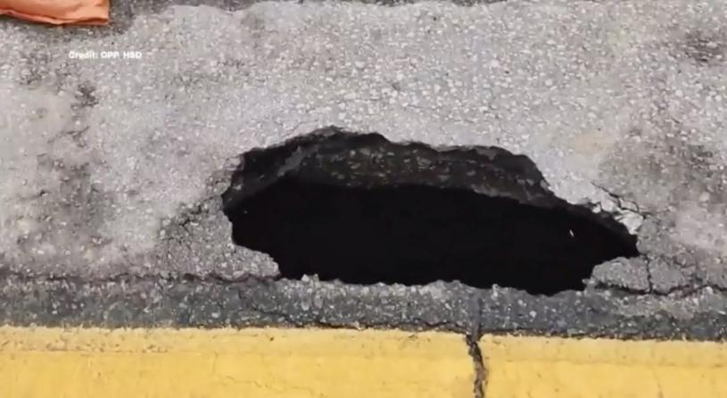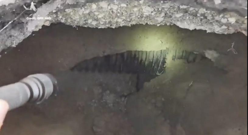 OPP警长Kerry Schmidt在推特(Twitter)上发布的一段视频中说:“从表面上看,这并不像什么,但一旦你下去看看里面,这就是公路下面的结构。你可以看到那里的一块排水砖,洞口一直向下,他们说至少有 11 呎,我觉得看起来比这更深,但现在这里是一个巨大的空洞,他们想知道它能扩展到什么程度。”