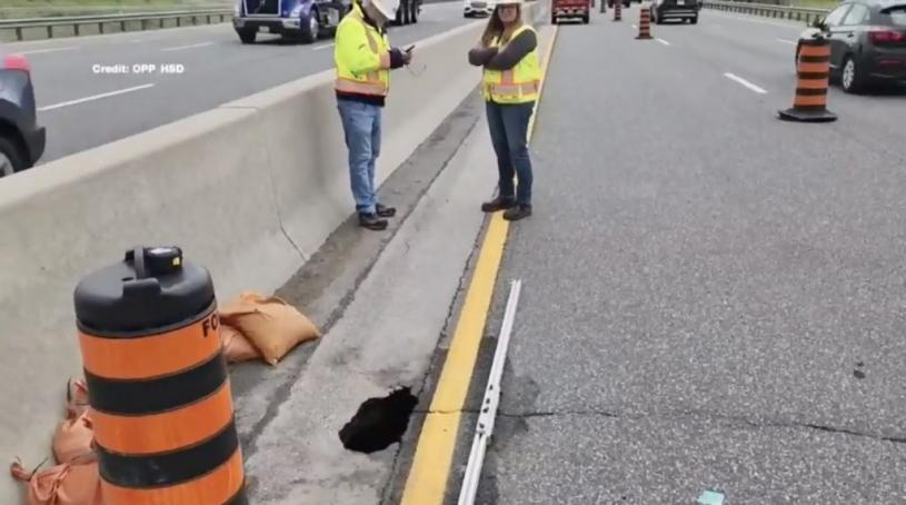 [星岛综合报道] 据安省警方(OPP)称,周二下午,一个11呎深的地洞正在400号公路沿线造成 “重大问题”。