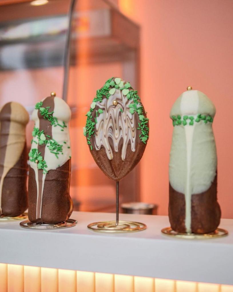 这家窝夫饼屋以其符合解剖学原理的窝夫饼而闻名,食物设计新奇,带点性趣味。饼上覆蓋著巧克力、糖粉等。