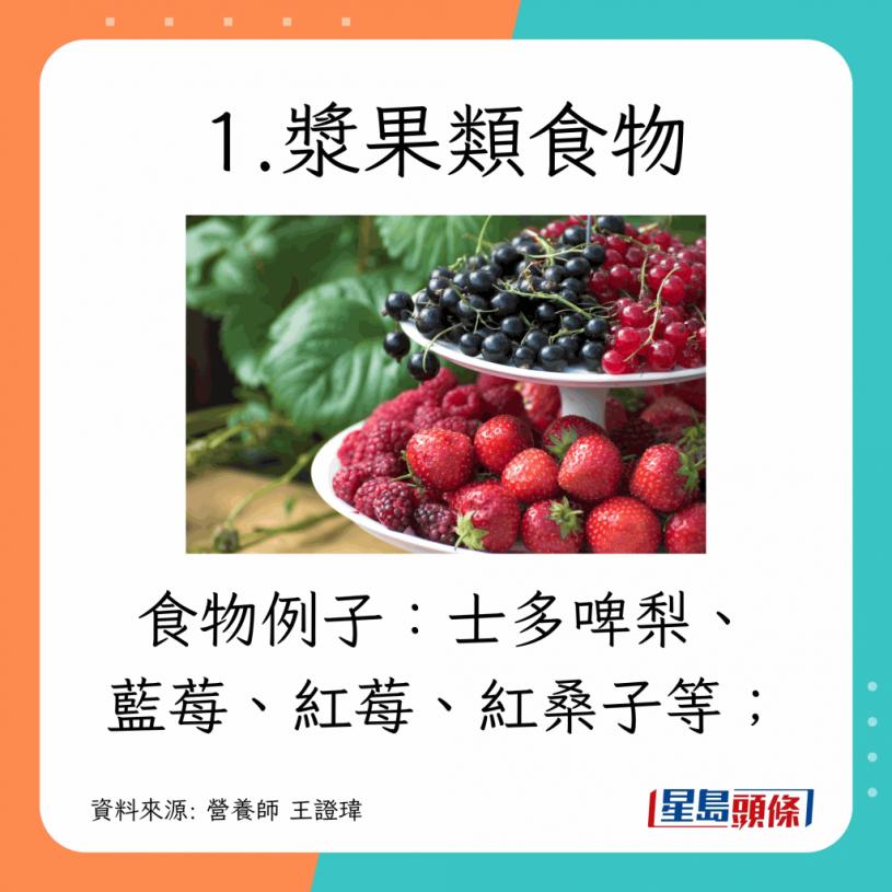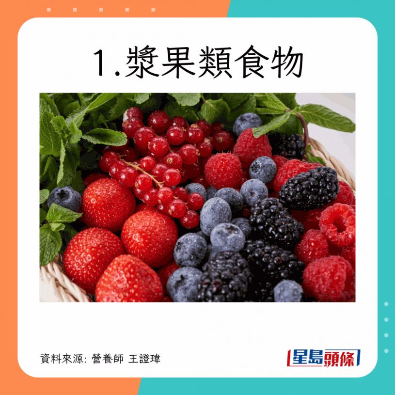 食物例子:草莓、蓝莓、红莓、红桑子等;