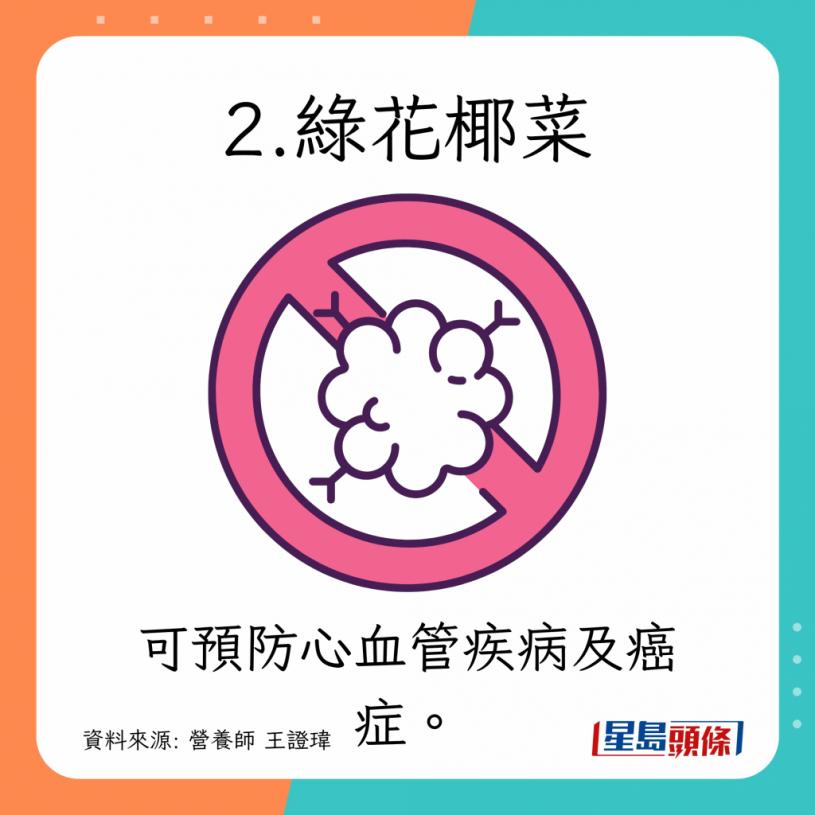 营养素及功效:属十字花科的食物,其中的含硫化合物可以帮助体内降低发炎因子,可预防心血管疾病及癌症。