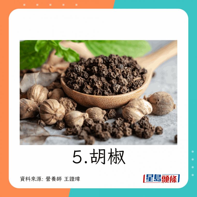 营养素及功效:黑胡椒含有高量的胡椒碱,亦具备抗发炎的功效。