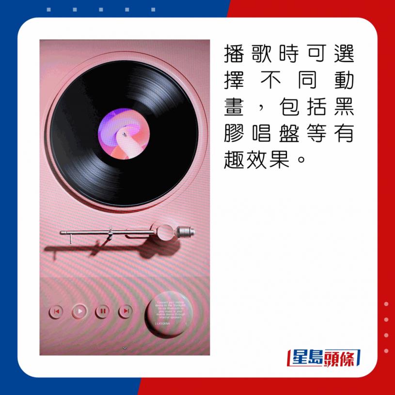 播歌时可选择不同动画,包括黑胶唱盘等有趣效果。